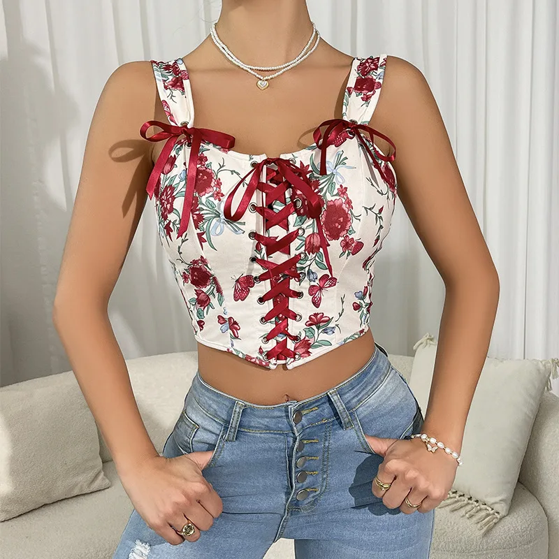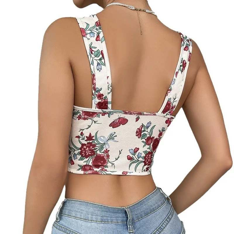 Floral Print Cami Top Front Bustier Sleeveless Slimming Belt Tummy Control Shaper Waist Trainer Women's Corset Fajas Shapewear